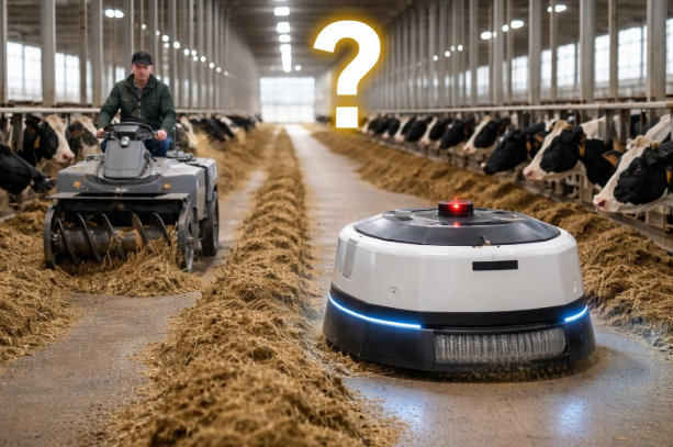 Поэтому прагматичная логика выбора в текущей реальности строится так: сначала обеспечить регулярность базовой операции проверенным способом — через подталкиватели «Кормилец» и «ПодкидышЪ», работающие в формате управляемого труда. Это дает ферме предсказуемый результат без необходимости перестраивать коровник «под робот». Затем, когда кормовой стол стабилизирован, а процессы на ферме выстроены так, что частота подталкивания держится технологически нужной, можно уже оценивать, есть ли смысл переходить на более сложную автономную систему.